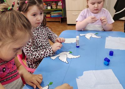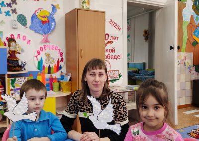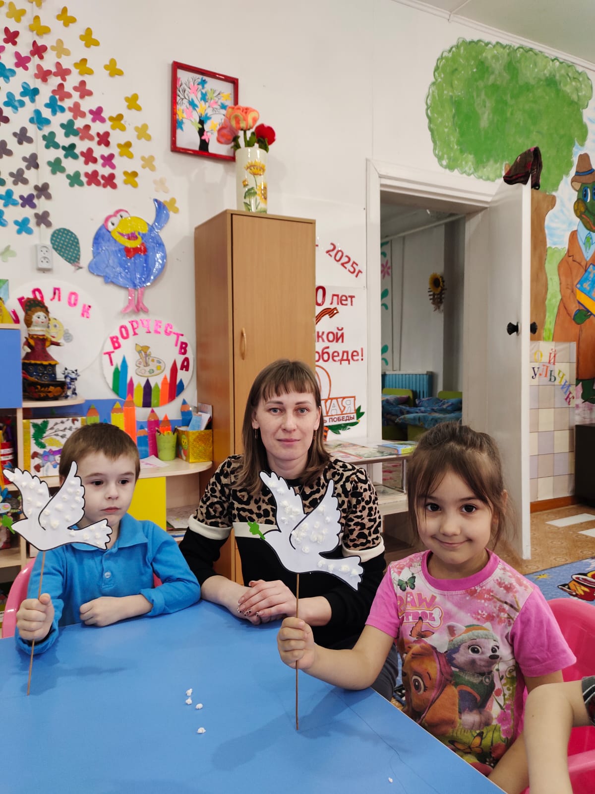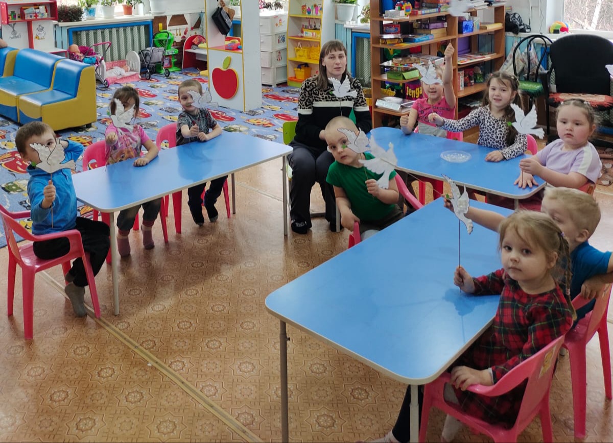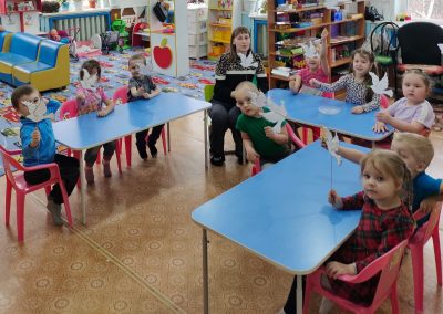 Библиотекарь п. Бельск устроила в детском саду «Ягодка» мастер-класс «Голубь Победы». Она рассказала ребятам о роли голубей в Великой Отечественной войне и о значении символа мира. После этого дети изготовили своих голубей Победы. Это стало знаком благодарности солдатам, которые помогли нашей стране одержать Великую Победу.