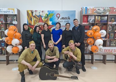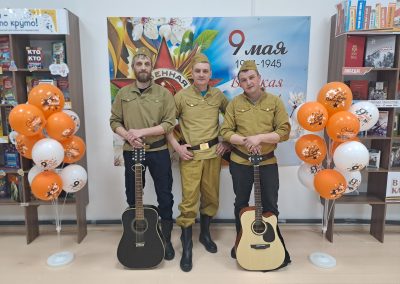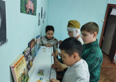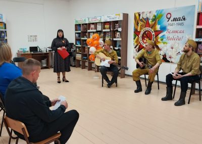 Военно-патриотическая игра «Наша Победа!» прошла в библиотеке п. Орджоникидзе. Участники ознакомились с книгами на выставке и приняли участие в конкурсах: викторине-разминке, музыкальном задании «Угадай мелодию», где нужно было отгадать песни военных лет, разгадали кроссворд и зашифрованное донесение.