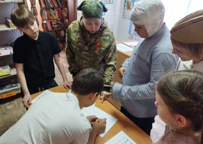 В Межпоселенческой центральной библиотеке мероприятие началось с проникновенного выступления библиотекаря, который погрузил ребят в трагичные и героические страницы Великой Отечественной войны. Его рассказ стал живым напоминанием о страшных годах, о мужестве и стойкости нашего народа. Он говорил об обороне Брестской крепости, битве за Москву, блокаде Ленинграда, Сталинградской и Курской битвах. Особое внимание уделил фронтовым письмам. Это не просто почта с передовой, а бесценные свидетельства чувств и переживаний людей, прошедших через ад войны. Каждая строчка, написанная под грохот канонады, пропитана надеждой, любовью к близким и верой в Победу. Эти письма – живой голос истории, позволяющий нам прикоснуться к трагедии и героизму тех лет.