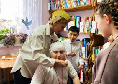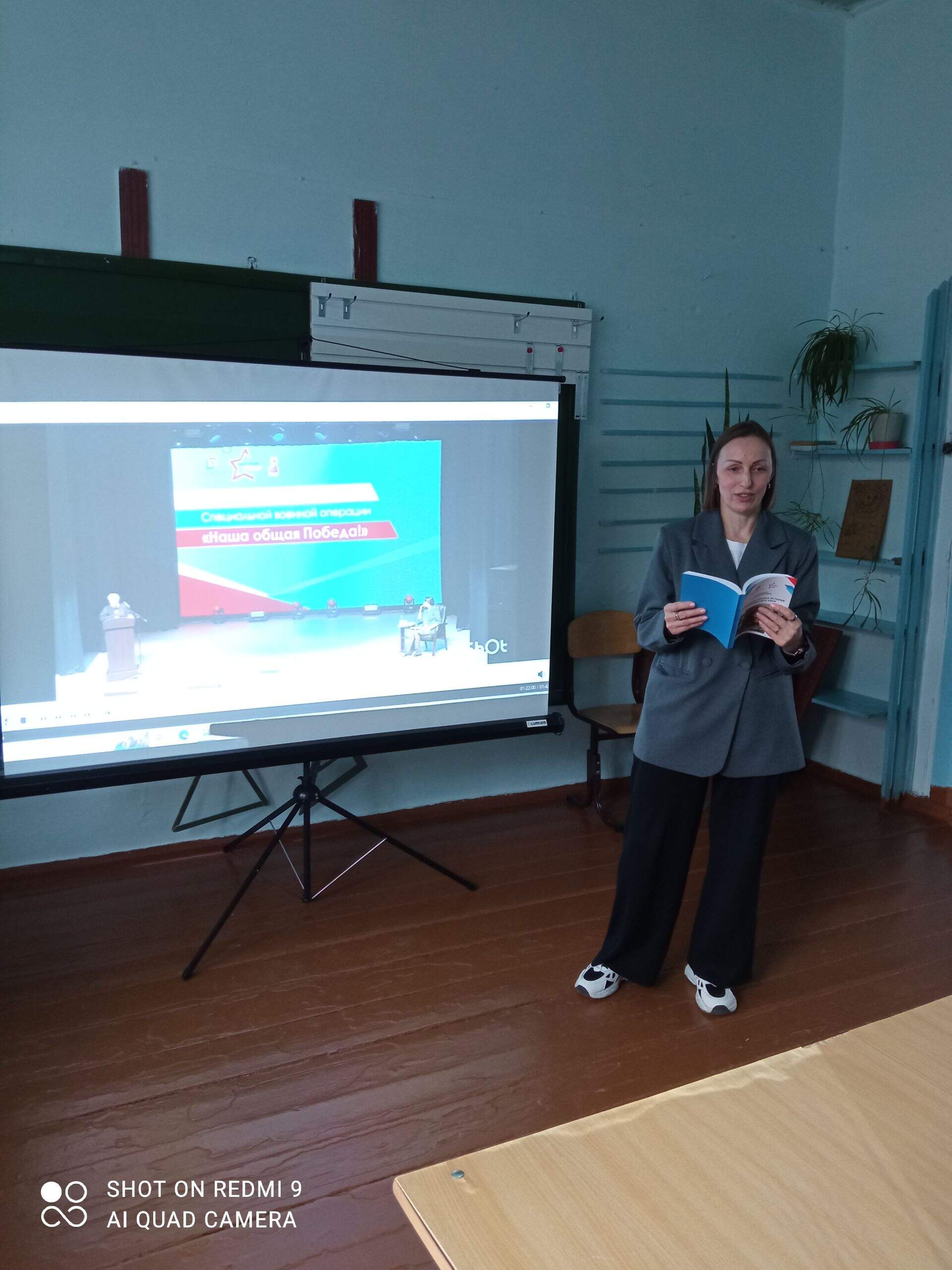 Особое внимание было уделено волонтёрскому движению п. Первомайск «Первомайские пчёлки». После просмотра фильма были заданы вопросы Светлане Владимировне на которые она охотно и обстоятельно отвечала. Присутствующие на мероприятии взрослые рассказали о своих родных и знакомых, которые принимают непосредственное участие в боевых действиях в зоне СВО.