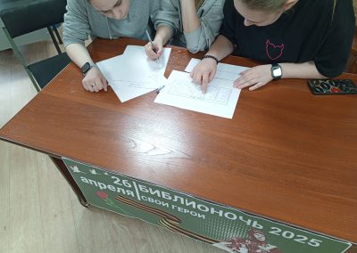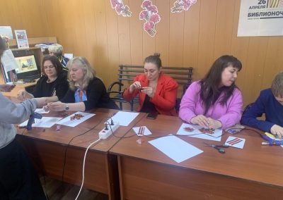 Участники «Библионочи» почтили память павших героев и выразили благодарность всем, кто защищал Родину. В завершение вечера прошел мастер-класс по изготовлению Георгиевской броши — символа мужества и вечной памяти о героях.