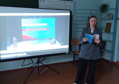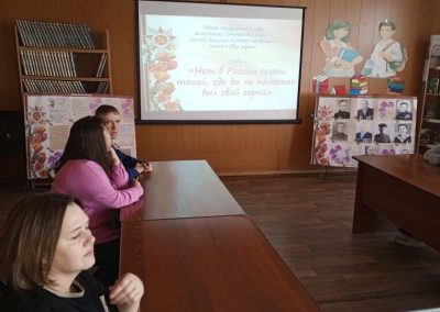 В сопровождении презентации «Помним. Гордимся. Благодарим» библиотекарь п. Кулаково рассказала о земляках-участниках Великой Отечественной войны.