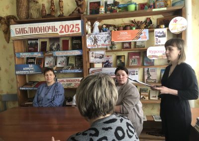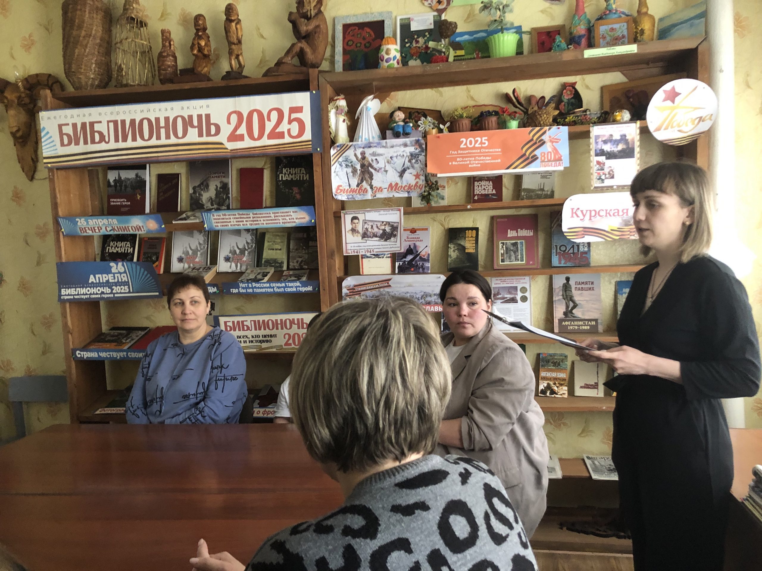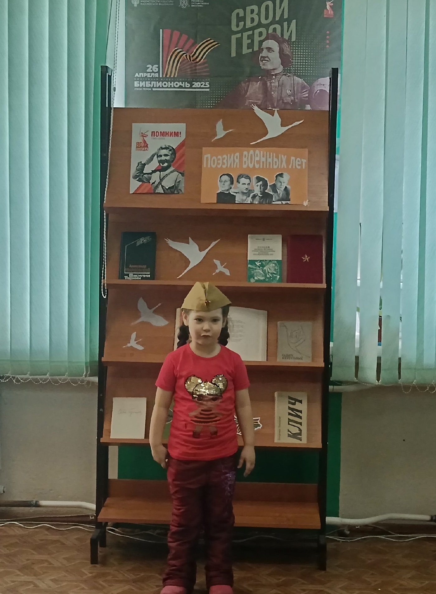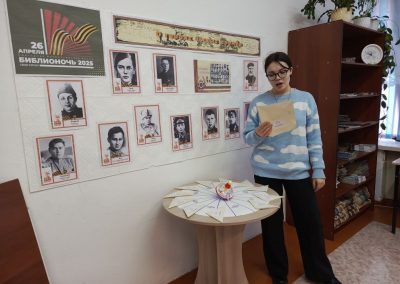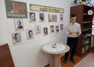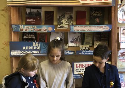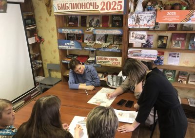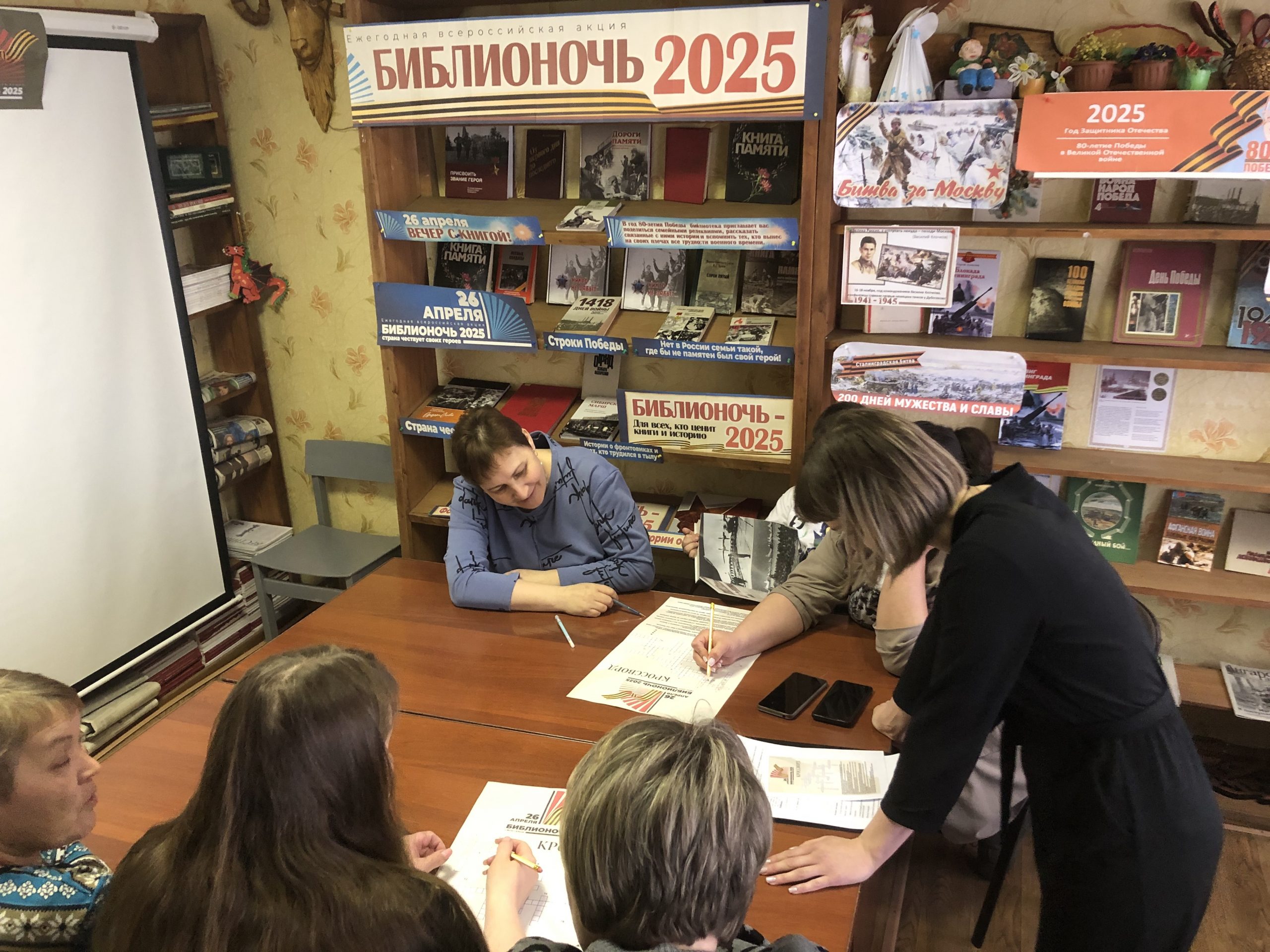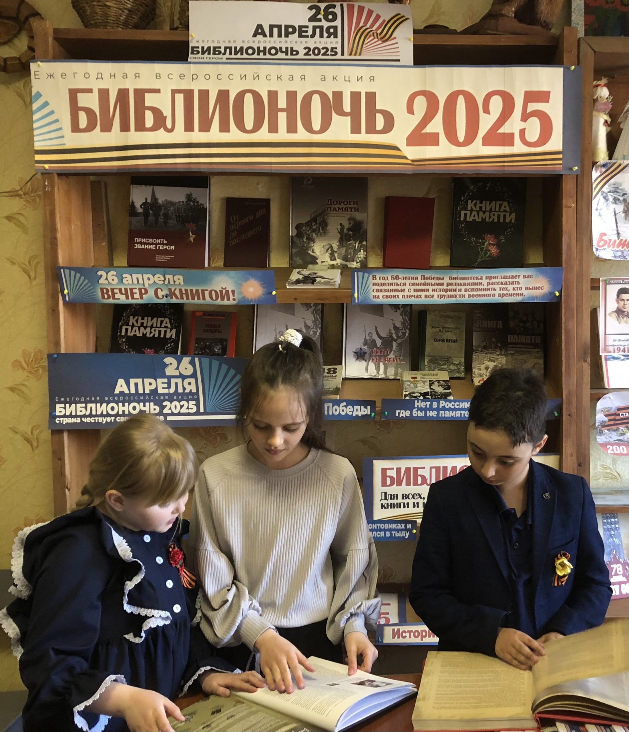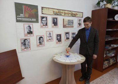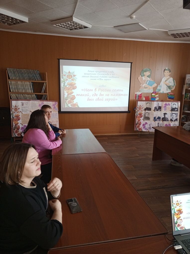 Ежегодная всероссийская акция «Библионочь» — это акция, которая объединяет любителей чтения и книги в рамках культурной ночи, которая была посвящена Году защитника Отечества и 80-летию Великой Победы. Тема акции — «Свои герои». Девиз: «Нет в России семьи, где бы ни был памятен свой герой».