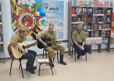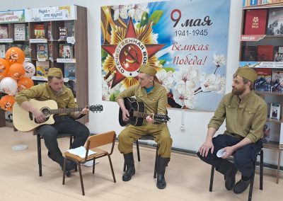 На музыкальном квартирнике «Песни в солдатской шинели» в библиотеке п. Новоангарск, гости исполняли военные песни под гитару, читали стихи, делились воспоминаниями о Великой Отечественной войне. Ведущая рассказала об истории создания некоторых песен. Среди прозвучавших композиций были «Священная война», «Темная ночь», «В землянке», «Катюша» и «День Победы».