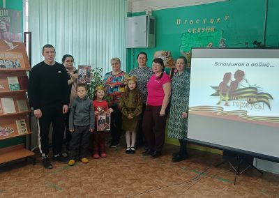 Патриотический час «Вспоминая о войне» прошел в п. Первомайск. Участники поделились фотографиями своих героев и рассказали истории о подвигах родных. Одни сражались на фронте, другие ковали Победу в тылу. У книжной выставки «Поэзия военных лет» самые юные участники, Настя Ремиз и Ульяна Пуляевская, проникновенно читали стихи о Великой Отечественной войне. Они выразили дань памяти и глубокое уважение к героям, защищавшим Родину.