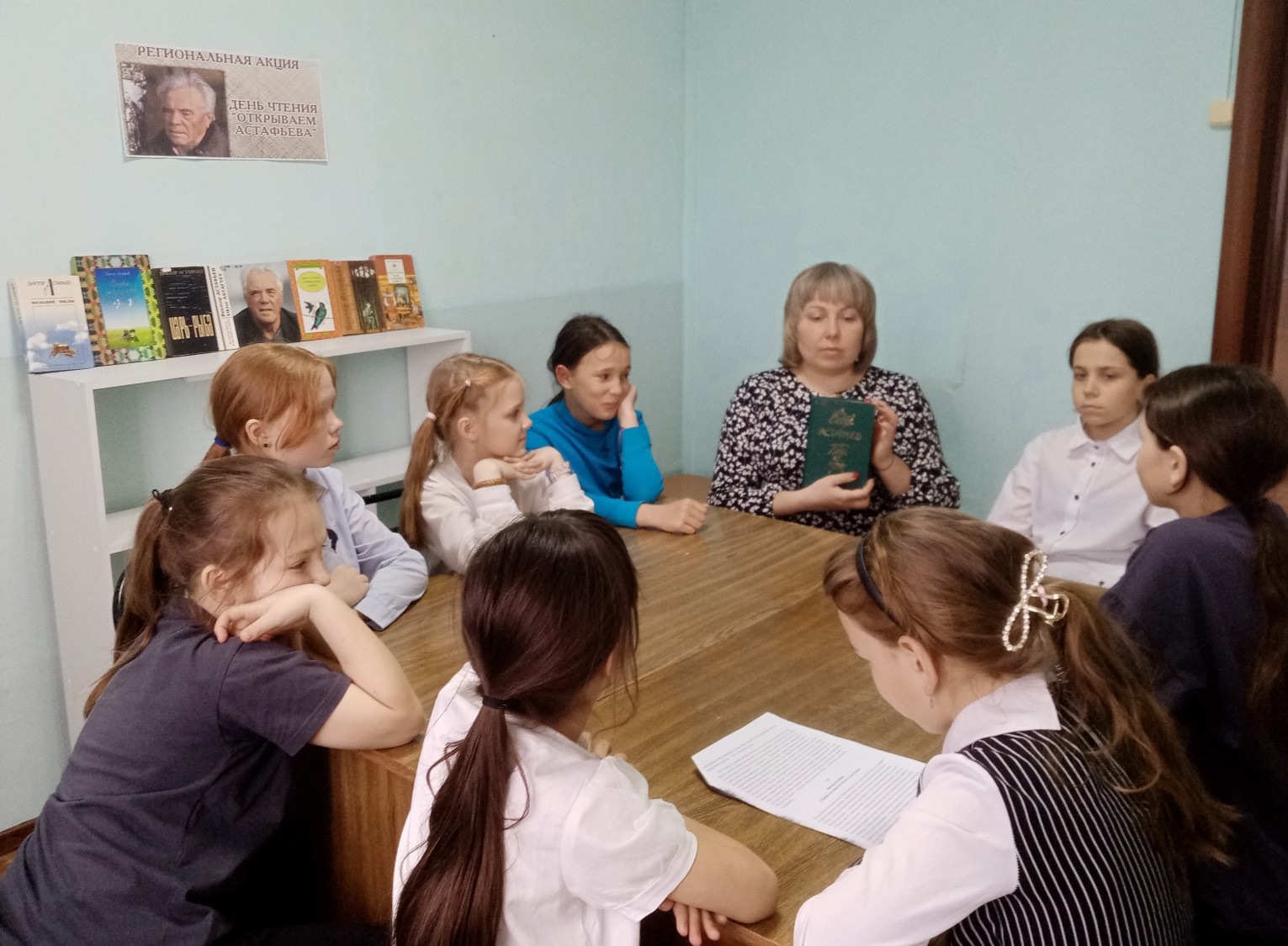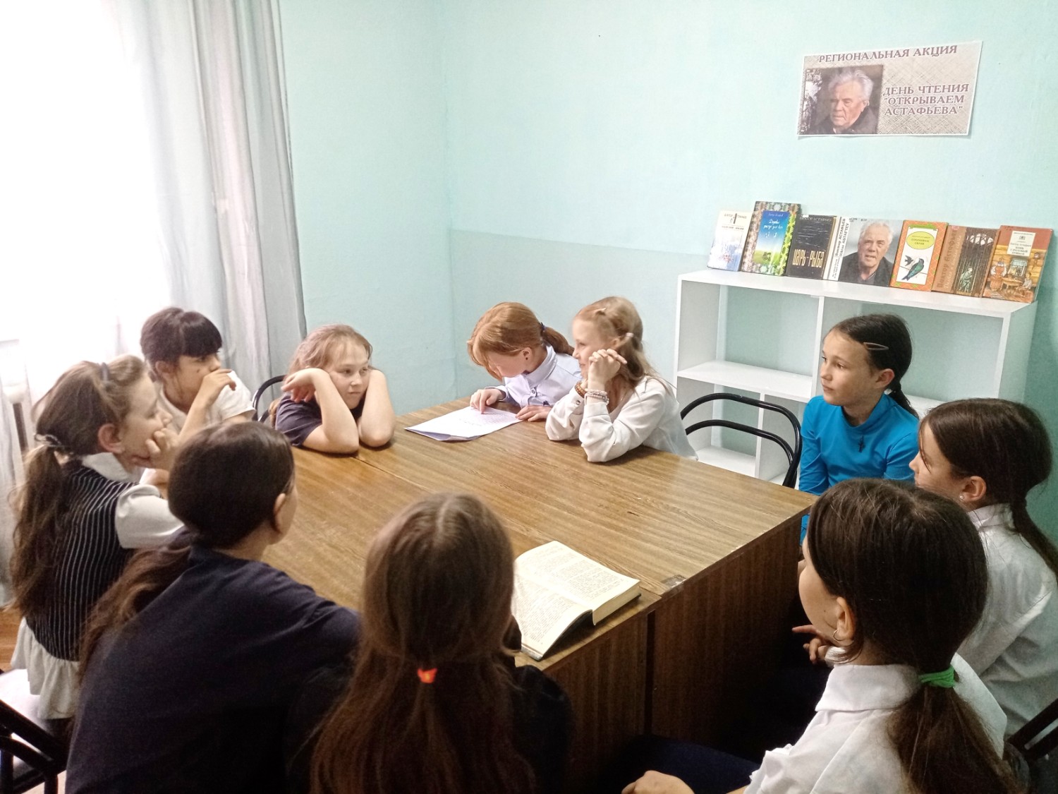 В День чтения мероприятие «Открываем Астафьева» посетили учащиеся 6 класса Орджоникидзевской СОШ вместе с классным руководителем Славовой Татьяной Дмитриевной. На мероприятии библиотекарь познакомила участников с биографией писателя, провела обзор книжной выставки, рассказала историю написания известных книг писателя, раскрывающих богатый мир чувств, образов, характеров, созданных в его произведениях. Ребята послушали медиа запись голоса писателя о его родной деревне Овсянке. Участники с большим интересом послушали отрывок из повести «Пастух и пастушка», приняли участие в обсуждении. Все произведения Виктора Астафьева учат добру, правде, чести, справедливости.