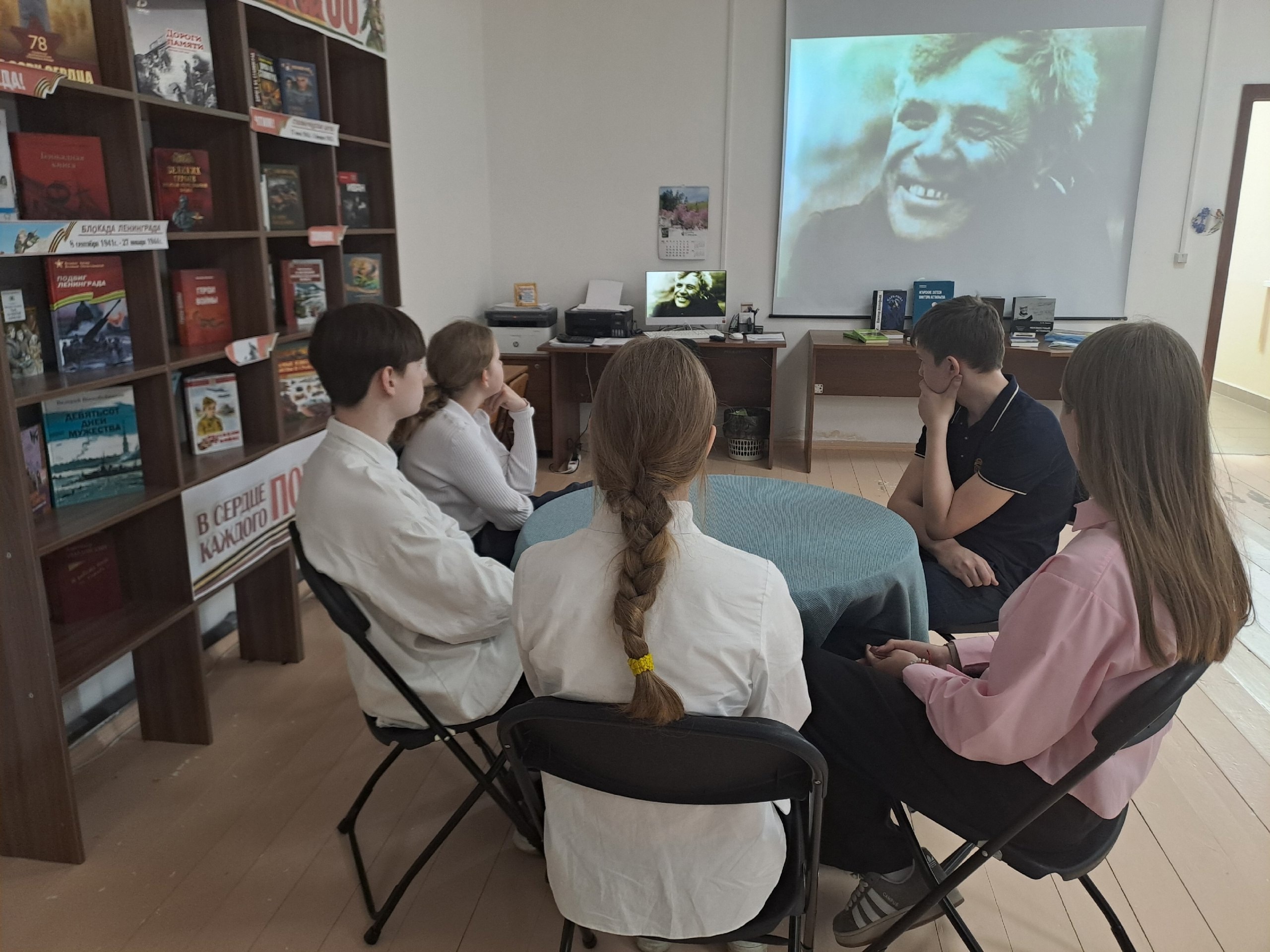 Новоангарская библиотека пригласила учащихся 8 класса МБОУ Новоангарской СОШ на краеведческий час «Великий писатель Сибири». Специалист библиотеки познакомила ребят с непростой биографией писателя, который рано остался без родителей, воевал в годы Великой Отечественной войны, был ранен, встретил на войне свою любовь. Вместе с читателями мы вспомнили одно из первых военных произведений В. П. Астафьева-«Пастух и пастушка». Ребята очень внимательно слушали отрывок из повести «Пастух и пастушка».