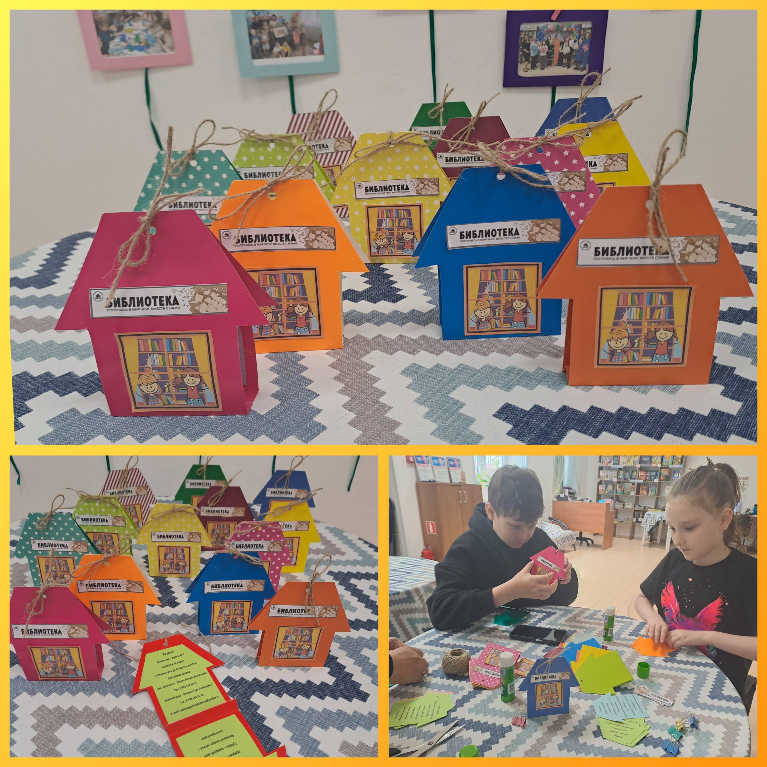 В завершение прошел мастер класс «Книжкин дом», где гости изготовили из картона, цветной бумаги и печатного материала брошюры в виде домиков, в которых есть вся необходимая информация о работе нашего учреждения: адрес, график работы, контактные данные.