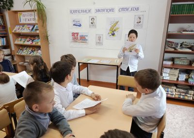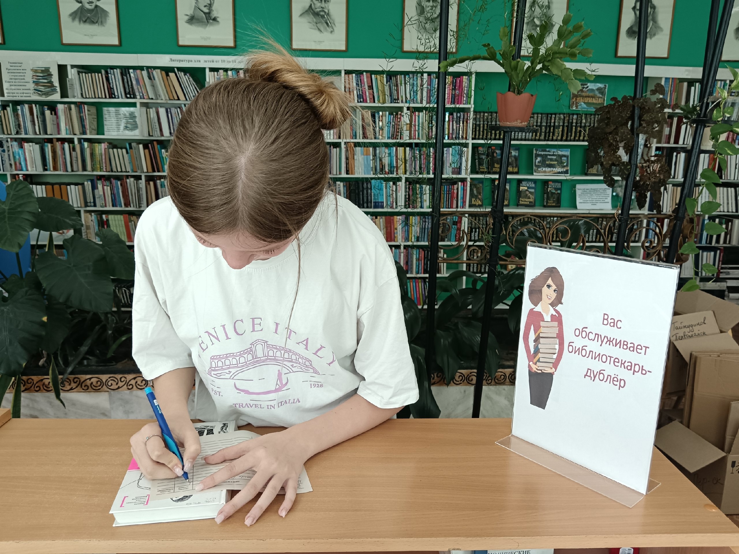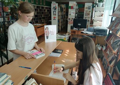 Также, в течение дня в библиотеке проходила акция «Из читателя — в библиотекари», которая вызвала огромный интерес у школьников. Они смогли попробовать себя в роли библиотекаря, с удовольствием общались со сверстниками, рекомендовали свои любимые книги и помогали в выборе книг. Ребята «примерили» на себя профессию библиотекаря, узнали все тайны и секреты, поделились своими впечатлениями, и все участники пришли к одному мнению: работа библиотекаря сложна, но интересна.