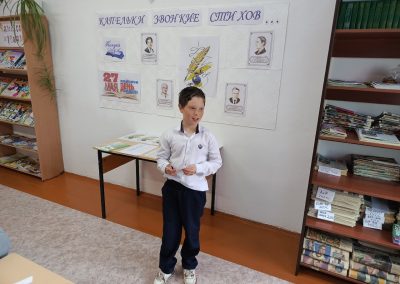 Участники поэтического часа «Капельки звонкие стихов…» погрузились в мир поэзии знаменитых детских поэтов, разгадывали каверзные задачки-рифмы и кроссворд с вопросами из детских стихотворений, а также попробовали себя в роли поэтов – помогли Незнайке написать красивые стихотворные строки. Закончилось мероприятие конкурсом чтецов «Поэтическая табуретка», где каждый желающий смог проявить свой актерский талант, прочитав с выражением стихотворение о библиотеке, книгах и чтении. Звонкие капельки стихов смогли затронуть струны души наших читателей, многие из которых решили продолжать свои творческие начинания в поиске рифмы и стихотворном творчестве. Надеемся, что в скором времени мы станем свидетелями появления новых талантливых поэтов.