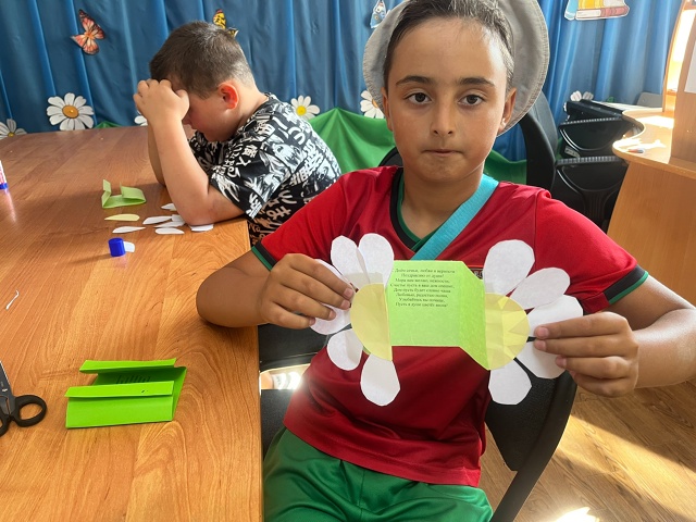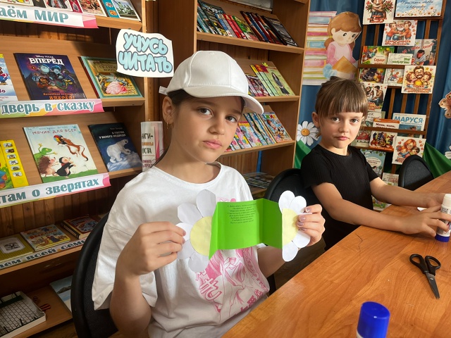 На мастер-классе по изготовлению открытки-ромашки юные читатели узнали об истории праздника, познакомились с легендой о Петре и Февронии, князе и княгине Муромских.
