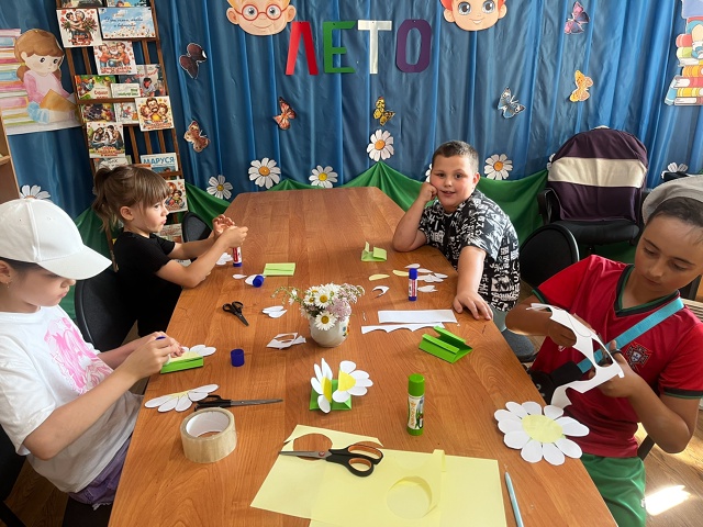В Межпоселенческой центральной библиотеке состоялась беседа-познание «Семья на страницах литературных произведений» для старшеклассников из трудового отряда. После беседы о ценности семьи был проведен мастер-класс «Ромашки нежный лепесток». Участники с удовольствием принялись за изготовление ромашек из бумаги, символизирующих чистоту, нежность и семейное тепло. Каждый лепесток, сделанный с любовью и старанием, стал напоминанием о том, как важно беречь семейные узы. Участники с радостью забрали с собой сувениры, созданные своими руками.