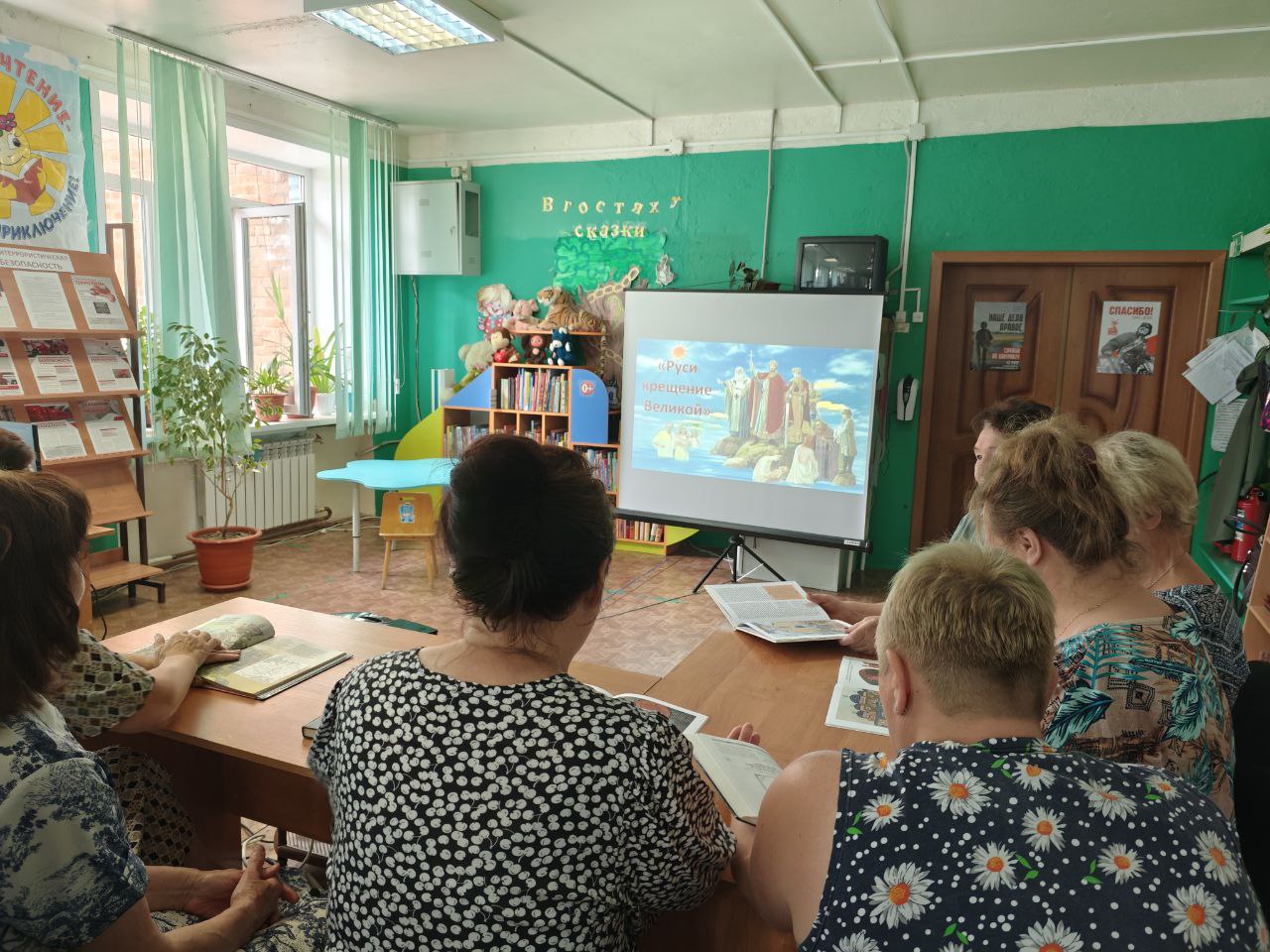 В библиотеке поселка Первомайск в день Крещения Руси, 28 июля, был организован духовно-нравственный час «Руси крещение Великой». Библиотекарь рассказала о ключевой роли Святого князя Владимира в духовном и культурном становлении России, отметив его заслуги в распространении христианства. Участники мероприятия получили возможность узнать об истории принятия христианства славянскими народами, о процессе перехода от язычества к православию, о связанных сэтим вызовах и о преемственности православной веры.