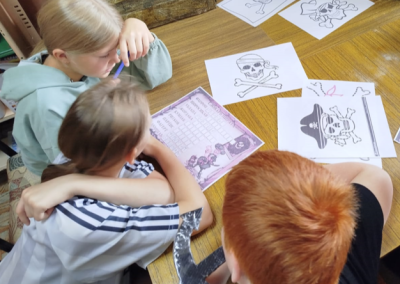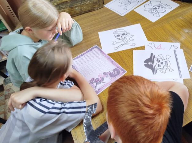 Ребята прошли церемонию посвящения в юного морского искателя, произнесли клятву настоящего пирата, а затем все вместе отправились в увлекательное путешествие на поиски сундука с сокровищами.