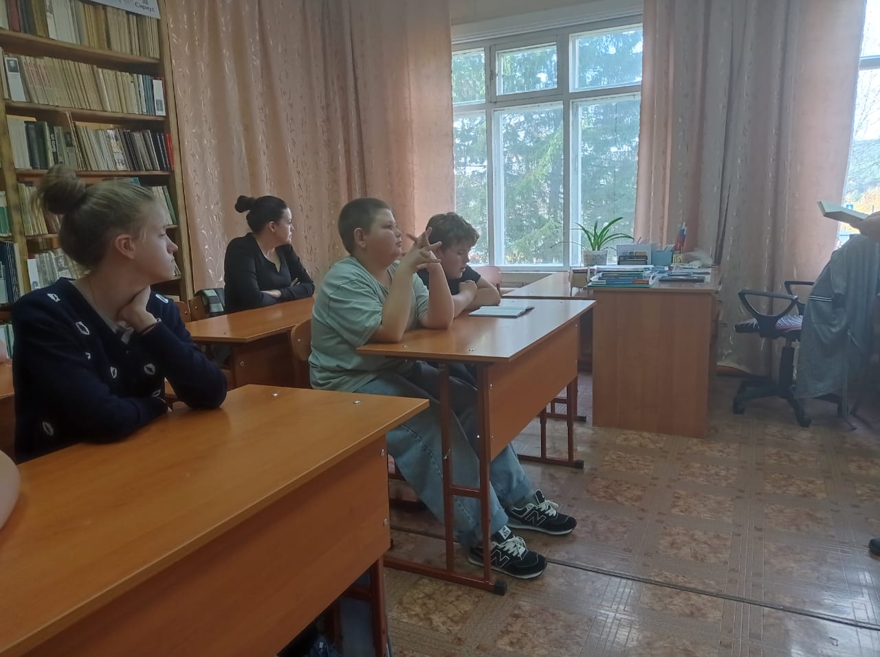 23 сентября на базе МБОУ «Южно-Енисейская СОШ», библиотека п. Южно-Енисейск провела День чтения произведений Валентина Григорьевича Распутина, для учащихся 7–8 классов.