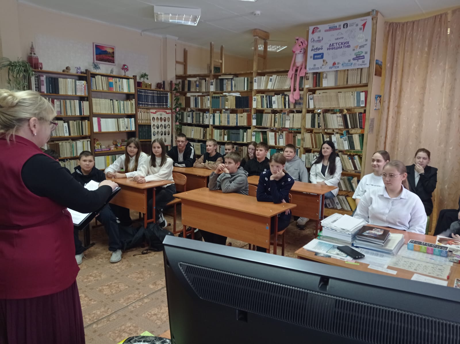 6 ноября для учащихся 6–9 классов, библиотекарь п. Южно-Енисейск провела урок мужества «Парад надежды», посвященный военному параду, который состоялся 7 ноября 1941 года в Москве и был посвящен 24-ой годовщине Великой Октябрьской Социалистической революции.