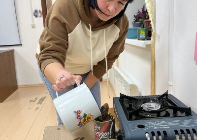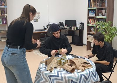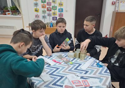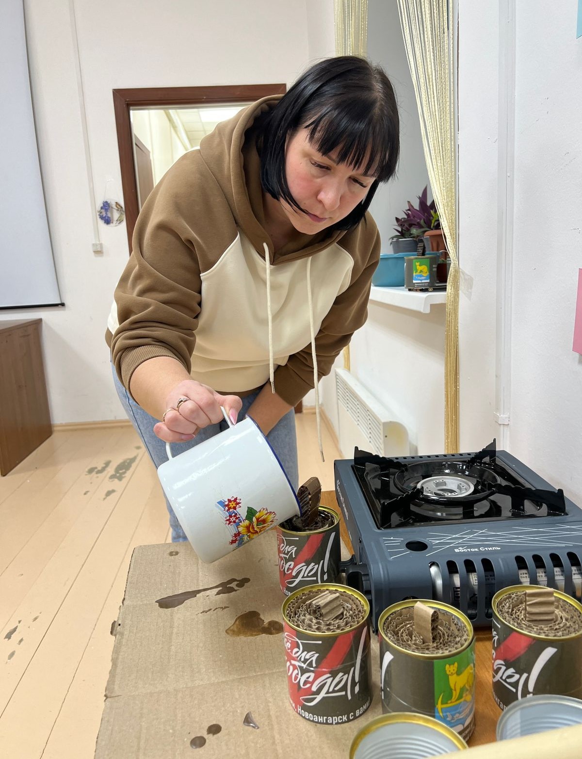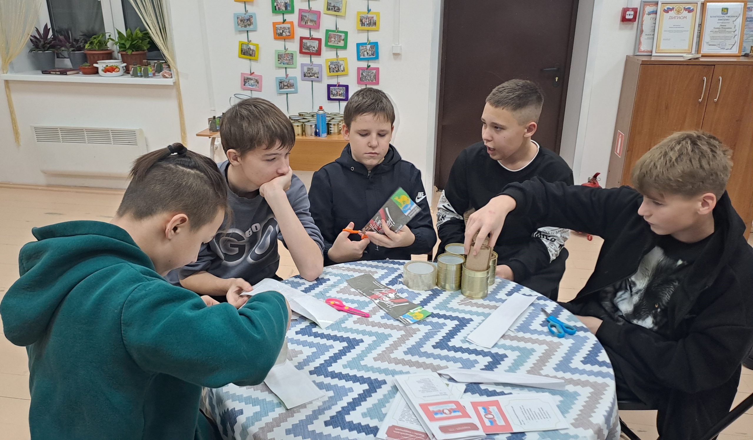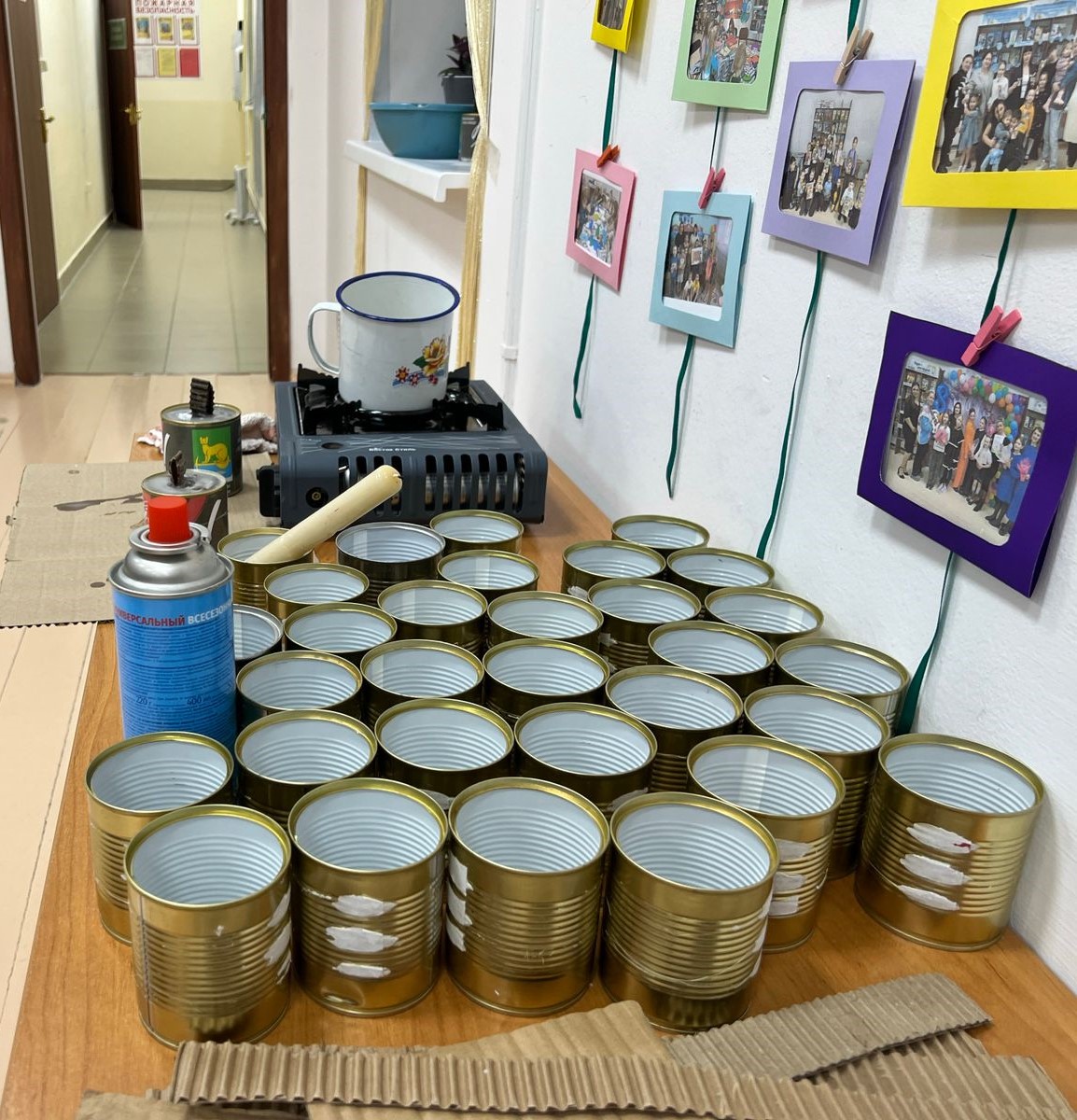 Ребята обклеивали консервные банки подготовленными этикетками, измельчали парафин, разрезали картон на полоски для дальнейшей его упаковки в консервные банки. Работа кипела, ведь каждый из участников хотел внести свой собственный вклад в общее и такое важное дело.