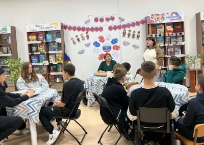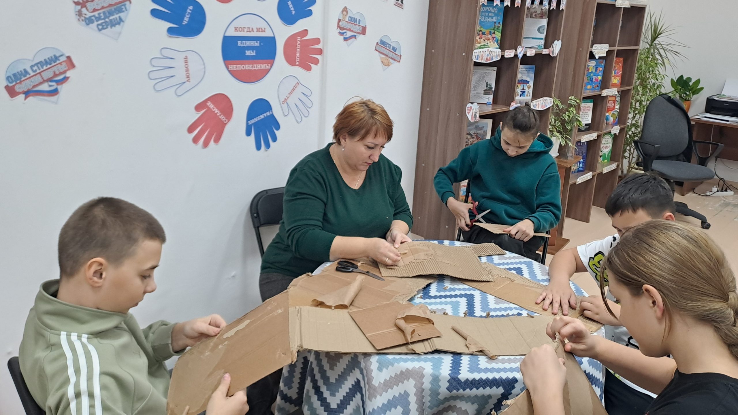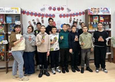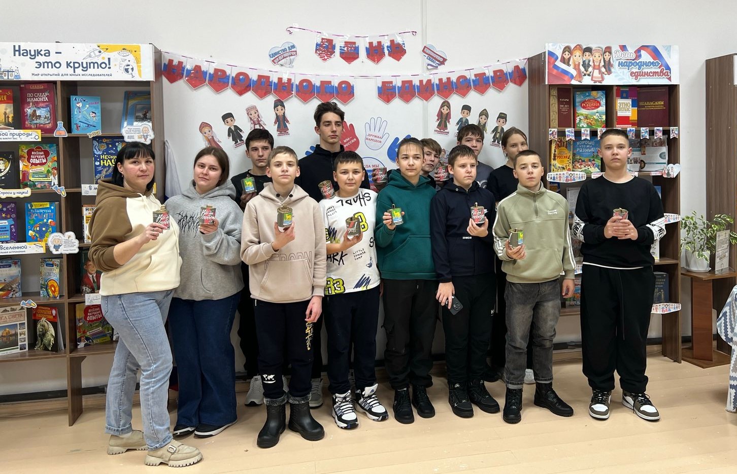 Отряд «КРЕМЕНЬ» п. Новоангарска от Всероссийского детско-юношеского военно-патриотического общественного движения «ЮНАРМИЯ» совместно с сотрудниками дома культуры снова посетил библиотеку — филиал № 7. Патриотический час под названием «Единым духом мы сильны», который организовали специалисты библиотеки — филиала № 7, был посвящен изготовлению блиндажных свечей для солдат на передовой.