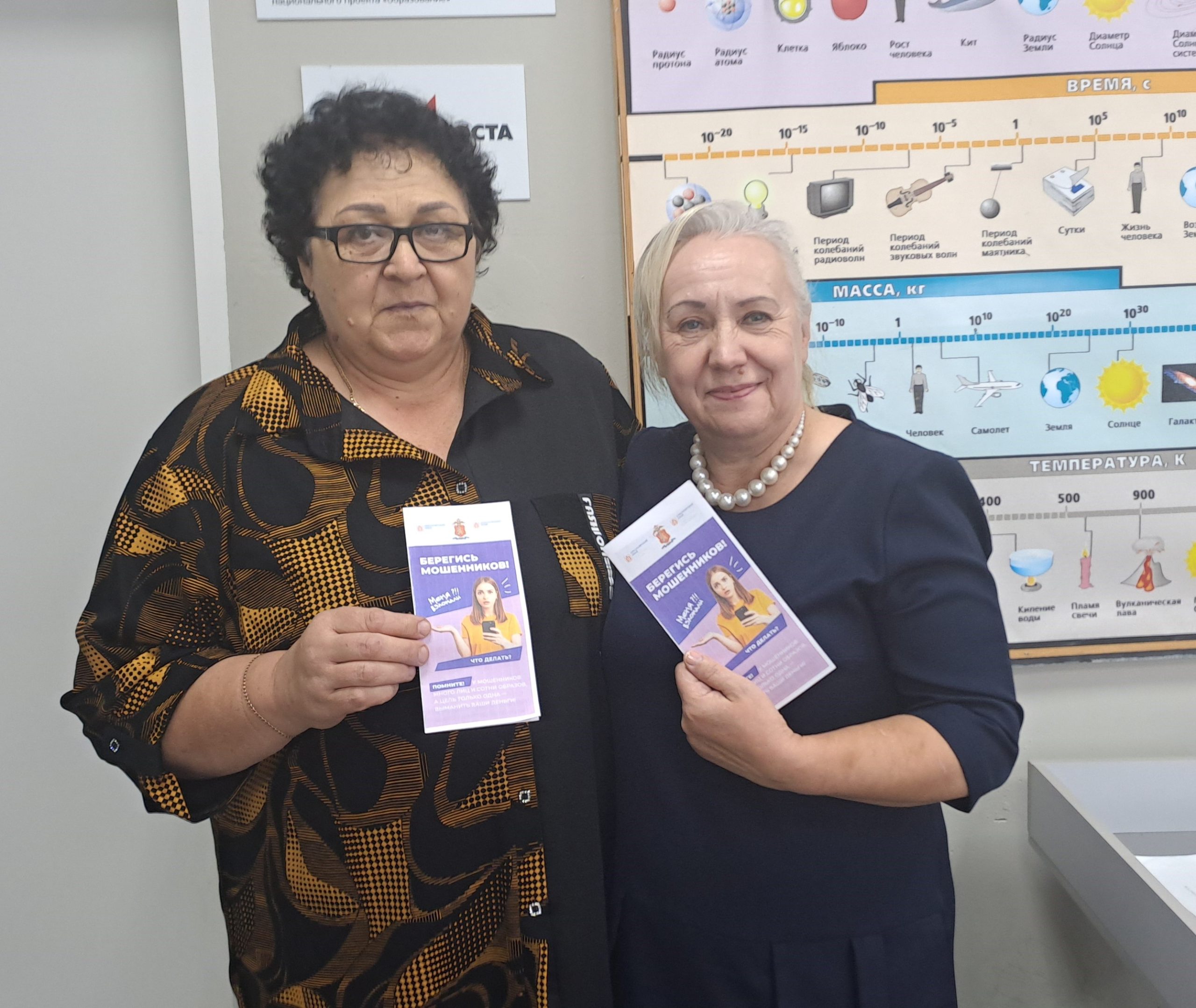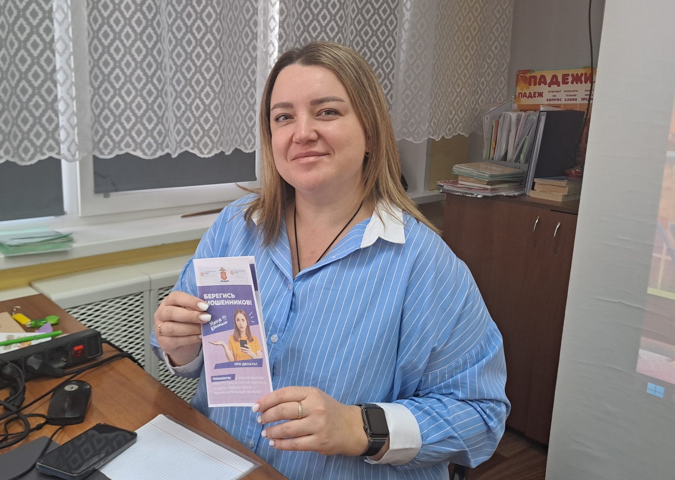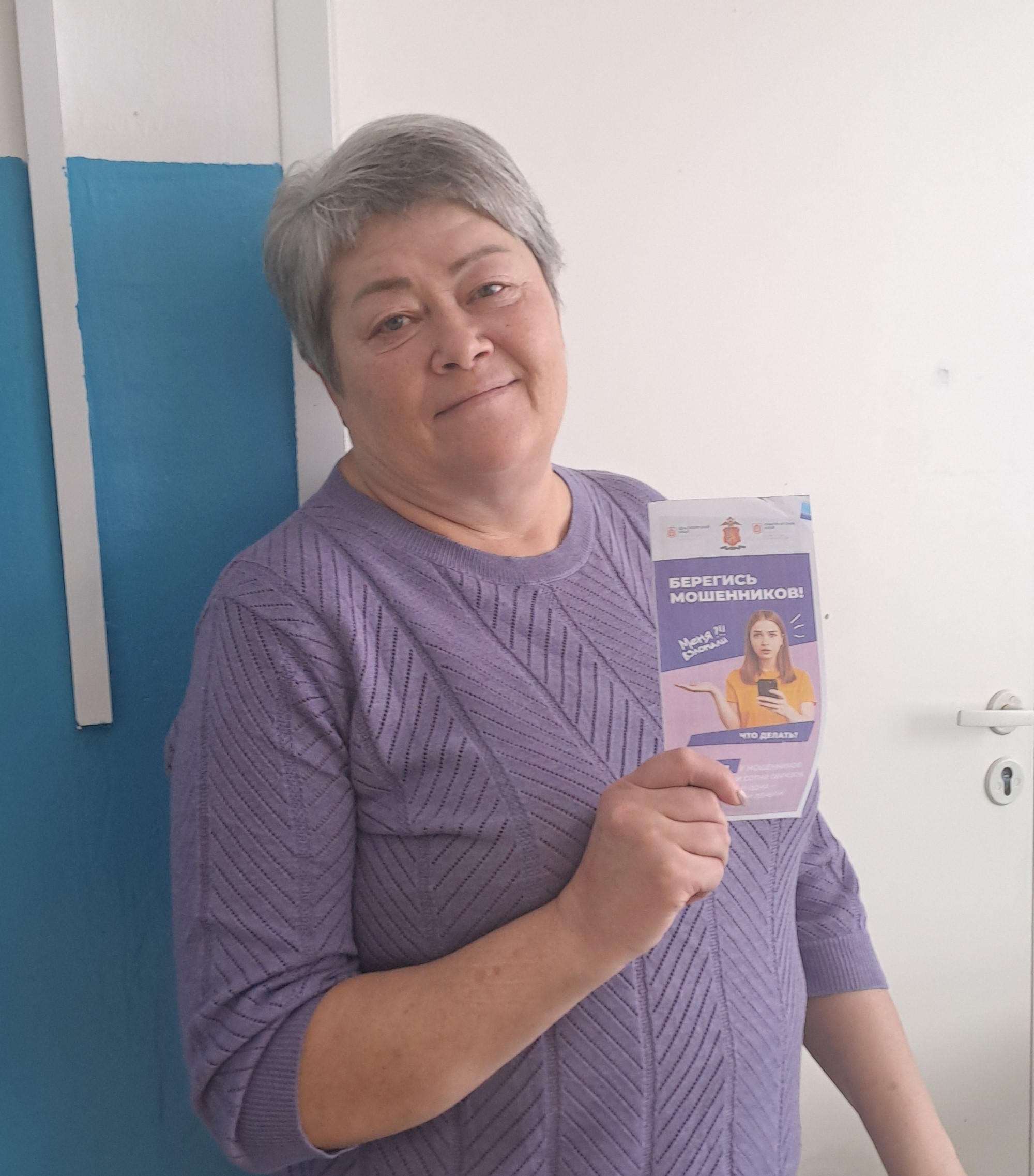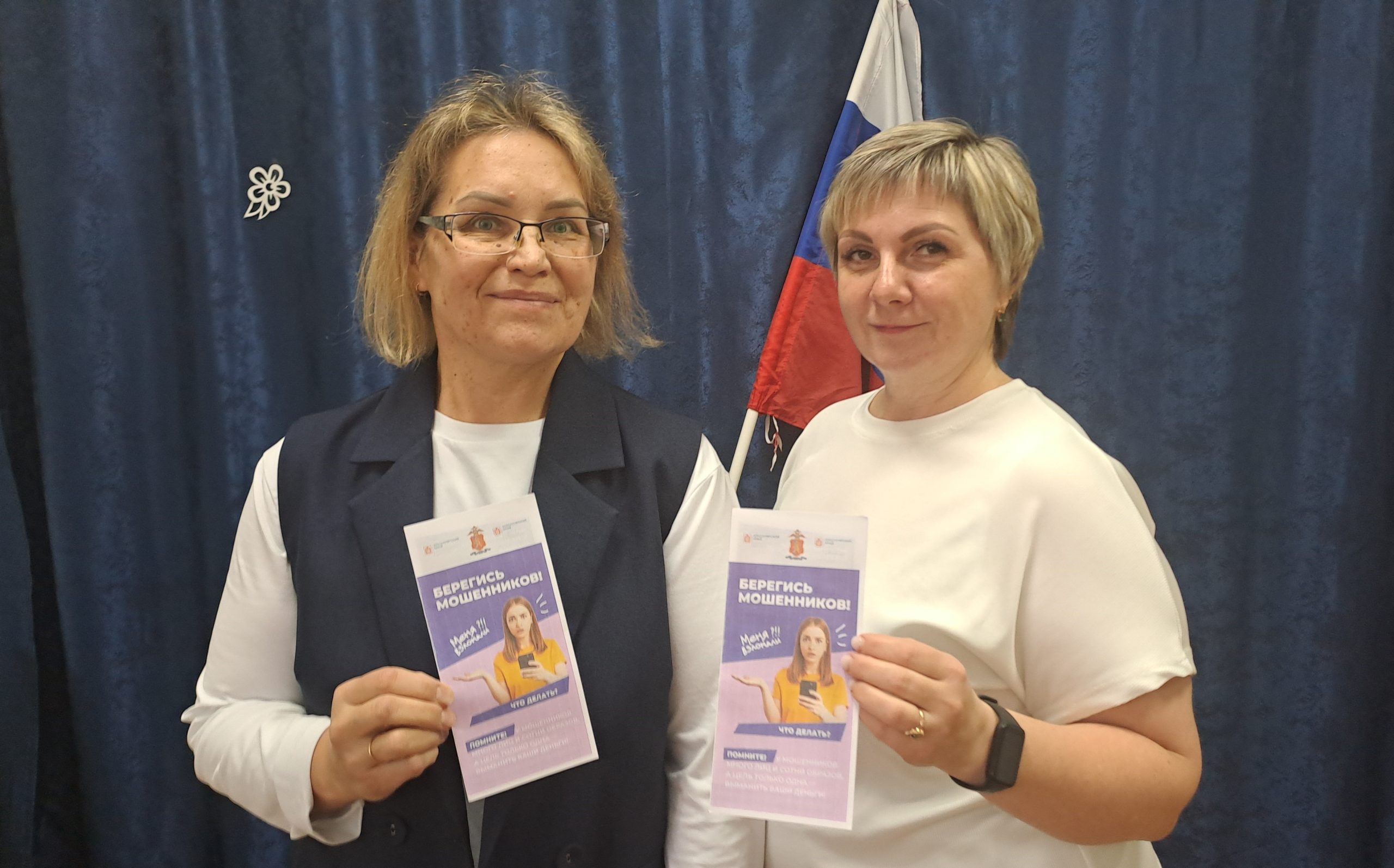 Раздавая информационные буклеты, специалист библиотеки рассказывала участникам об основных видах мошенничества, которые могут угрожать безопасности в сети.
